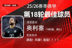 第18輪評(píng)選結(jié)果出爐,奧利塞替補(bǔ)登場(chǎng)1球3助完美發(fā)揮,幫助拜仁5-1逆轉(zhuǎn)大勝萊比錫,當(dāng)選【體育資訊X小紅書德甲第18輪最佳球員】!