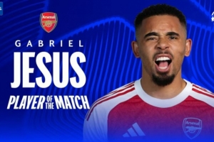 本場比賽熱蘇斯首發(fā)梅開二度,賽后當選歐冠官方評選出的本場最佳球員。