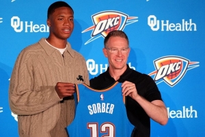 索伯現(xiàn)年19歲,身高2米08,體重113公斤,臂展約2米29,司職中鋒/大前鋒,在去年選秀大會首輪第15順位被雷霆選中。