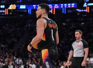 太陽主將布克上半場打得很主動,更多地選擇沖擊內(nèi)線或者中距離出手,多次制造犯規(guī)獲得罰球。