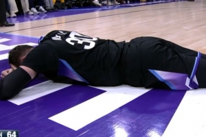GIF-努爾基奇搶籃板被掃到臉,眉角被打開(kāi)