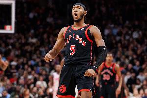 上半場,猛龍球員奎克利表現(xiàn)出色,進(jìn)攻端手感火熱,首節(jié)就拿到11分,在17分鐘的時(shí)間里,投籃6中5,三分球4中4,罰球4中4,砍下18分2籃板3助攻1搶斷的數(shù)據(jù),正負(fù)值+12。