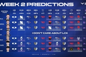 體育資訊1月21日訊 LCK官方發(fā)布了本周的賽事預(yù)測(cè):今天全員預(yù)測(cè)DK獲勝 / T1對(duì)戰(zhàn)KT全都看好T1。