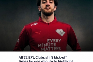 體育資訊1月21日訊 EFL官方消息,英格蘭72家俱樂部調(diào)整開球時(shí)間,強(qiáng)調(diào)CPR的重要性。
