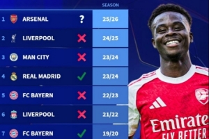 德轉(zhuǎn)也盤點(diǎn)了此前9支賽季前7場(chǎng)歐冠全勝的球隊(duì)最終戰(zhàn)績,其中僅23/24賽季的皇馬、19/20賽季的拜仁最終奪冠,其余包括利物浦、曼城、巴薩、米蘭等球隊(duì)最終均無緣冠軍。