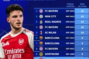 體育資訊1月21日訊 阿森納本賽季在歐冠豪取7連勝,德轉(zhuǎn)也盤(pán)點(diǎn)了歐冠歷史連勝紀(jì)錄榜,具體如下(日期為連勝開(kāi)始時(shí)間):