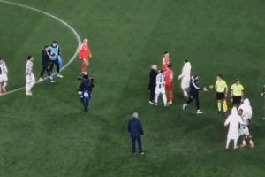 帕夫利季斯罰點(diǎn)時(shí)滑倒,踢飛點(diǎn)球,賽后難過不已,穆帥擁抱送上安慰。