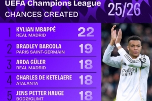 本賽季歐冠創(chuàng)造機會榜