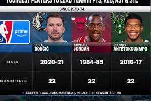 歷史上最年輕的得分、籃板、助攻、搶斷均領(lǐng)銜全隊的球員: