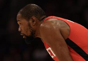 此役,杜蘭特出戰(zhàn)44分鐘,21投13中,三分8投5中,罰球6罰5中,得到36分7籃板3助攻1蓋帽,出現(xiàn)8次失誤,正負值-15。
