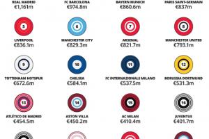 商業(yè)收入推動了西班牙兩大豪門的崛起,盡管各俱樂部對“收入”的分類方式不同,但根據(jù)德勤對商業(yè)收入的定義,皇馬在上賽季創(chuàng)造了驚人的4.99億鎊商業(yè)收入,巴薩則以4.38億鎊緊隨其后,他們是唯二商業(yè)收入超過4億鎊的俱樂部。緊隨其后的是拜仁(3.88億鎊)、曼城(3.43億鎊)、曼聯(lián)(3.33億鎊)、巴黎(3.08億鎊)和利物浦(3.07億鎊),也都超過了3億英鎊。這些數(shù)字凸顯了即使在足球最富有的俱樂部之間,商業(yè)收入也存在巨大差距:前20名中有4家俱樂部的商業(yè)收入不到1億鎊。