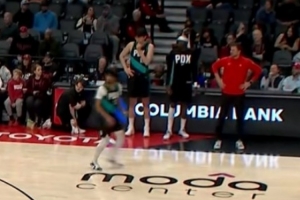 體育資訊1月23日訊 今日開拓者127-110戰(zhàn)勝熱火,比賽進(jìn)行到第4節(jié)最后一分鐘,勝負(fù)已定,楊翰森在場(chǎng)邊準(zhǔn)備出場(chǎng),但是依舊沒(méi)能等到這短暫的機(jī)會(huì)。