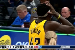 GIF-步行者挑戰(zhàn)想拿回球權(quán) 結(jié)果送切特兩罰(西亞卡姆打手)