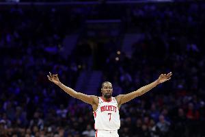 杜蘭特背靠背出戰(zhàn)40分40秒,他的表現(xiàn)毫無(wú)疑問(wèn)是火箭的真大腿。