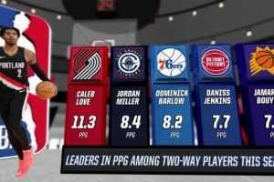 開拓者主場(chǎng)迎戰(zhàn)猛龍,轉(zhuǎn)播方給出一項(xiàng)數(shù)據(jù)統(tǒng)計(jì),本賽季雙向合同球員場(chǎng)均得分前五: