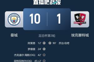 體育資訊01月11日訊 足總杯第3輪,曼城10-1狂勝英甲隊(duì)??巳爻恰?/p>