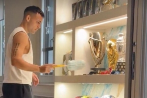 體育資訊1月25日訊 在本輪意甲聯(lián)賽主場(chǎng)大勝比薩后,國(guó)際米蘭迎來(lái)了短暫的休息時(shí)間,國(guó)米隊(duì)長(zhǎng)勞塔羅·馬丁內(nèi)斯在家中打掃了自己的獎(jiǎng)杯。