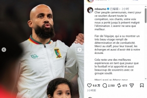喀麥隆前鋒姆伯莫社媒寫道:“親愛的喀麥隆民眾,感謝你們?cè)谡麄€(gè)賽事期間給予的支持,你們的歌聲和吶喊一直支撐著我們走到現(xiàn)在,盡管我們被淘汰了,但未來(lái)只會(huì)更好?!?/p>