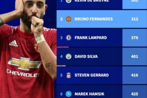 體育資訊1月26日訊 英超第23輪比賽,曼聯(lián)在客場(chǎng)挑戰(zhàn)阿森納。本場(chǎng)比賽,B費(fèi)助攻多爾古打進(jìn)反超比分的進(jìn)球,這讓他在英超中直接參與進(jìn)球數(shù)達(dá)到200球(103球,97助攻)。德國(guó)轉(zhuǎn)會(huì)市場(chǎng)盤(pán)點(diǎn)了新世紀(jì)五大聯(lián)賽最快直接參與200球中場(chǎng)球員,B費(fèi)312場(chǎng)位居次席,僅次于302場(chǎng)的德布勞內(nèi)。