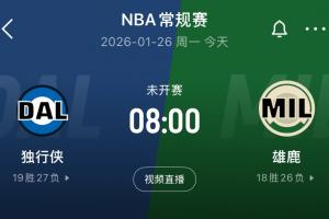 體育資訊01月26日訊 ESPN名記Shams報(bào)道,原定北京時(shí)間今日早晨8:00進(jìn)行的雄鹿主場迎戰(zhàn)獨(dú)行俠的NBA常規(guī)賽,因天氣原因推遲。