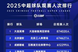 根據(jù)中足聯(lián)的數(shù)據(jù),2025年,中超、中甲和中乙三級(jí)職業(yè)聯(lián)賽票房總收入達(dá)到了6.4億元人民幣,增幅高達(dá)38.12%,其中中超聯(lián)賽16家俱樂部票房總收入達(dá)到了5.81億元。據(jù)《足球》報(bào)報(bào)道,有2家俱樂部票房收入超過了1億元人民幣。