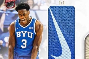 球星卡Topps官方社媒表示:“迪班薩在砍下43分那場比賽所穿球褲上的Nike Swoosh Logo已經(jīng)被裁剪下來,制作成了一張1-of-1的親筆簽名球星卡?!?/p>