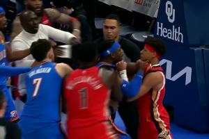 鵜鶘雷霆比賽后爆發(fā)劇烈沖突 多特費爾斯掐架 費爾斯多次沖鋒被攔