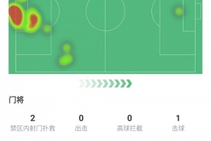 首發(fā)踢滿全場(chǎng)、撲救4次、禁區(qū)內(nèi)射門(mén)撲救2次、擊球1次、進(jìn)球1個(gè)