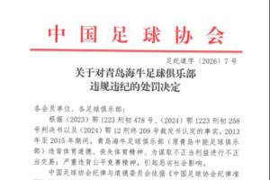 一、扣除青島海牛足球俱樂(lè)部2026賽季相應(yīng)的職業(yè)聯(lián)賽積分7分;