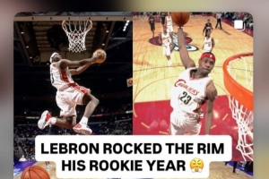 在本場比賽開始之前,詹姆斯轉(zhuǎn)發(fā)了幾張自己在新秀賽季扣籃的瞬間。
