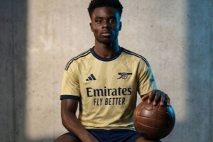 阿森納2026-27賽季第二客場球衣以淺黃色為主色調(diào),海軍藍(lán)為輔助色,用于標(biāo)識、鑲邊及圖案細(xì)節(jié)。