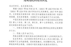 足協(xié)公布處罰公告,北京國(guó)安被扣5分+罰款人民幣40萬元。隨后北京國(guó)安官方回應(yīng):“人在做,天在看!頭頂三尺有神明!”