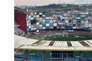 這座位于葡萄牙萊里亞的球場(chǎng)在惡劣天氣襲擊后遭受嚴(yán)重?fù)p壞,該體育場(chǎng)位于里斯本以北80英里處,曾承辦2004年歐洲杯的兩場(chǎng)比賽。