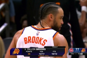 此前狄龍?jiān)谫惡蟛稍L中說道:“我不尊重任何人,除非他能在我頭上得40分?!?/p>
