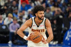 掘金球星賈馬爾·穆雷展現(xiàn)球星成色,雖然在第四節(jié)初段連投連丟,但他及時調(diào)整狀態(tài),末段屢次幫助球隊砍分。