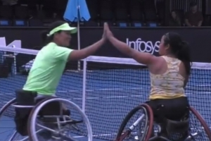 體育資訊1月30日訊 澳網(wǎng)輪椅組女雙決賽,頭號(hào)種子王紫瑩/李曉輝2-0擊敗2號(hào)種子朱珍珍/上地結(jié)衣,衛(wèi)冕澳網(wǎng)冠軍。