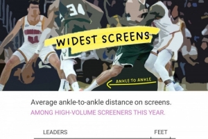 體育資訊1月13日訊 今天,數(shù)據(jù)專家Todd Whitehead統(tǒng)計了本賽季高頻為隊友設(shè)置掩護球員中的平均掩護寬度排名(掩護時左右腳踝間距),具體如下:
