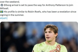 報道稱將為這位22歲的年輕門將支付300萬英鎊轉(zhuǎn)會費。埃勒伯格今日將前往桑德蘭,并將在周末接受體檢。他的加盟預(yù)計將為桑德蘭門將安東尼·帕特森轉(zhuǎn)會米爾沃爾鋪平道路。球員風(fēng)格與羅賓·羅夫斯相似,后者自夏季加盟以來一直給人留下深刻印象。