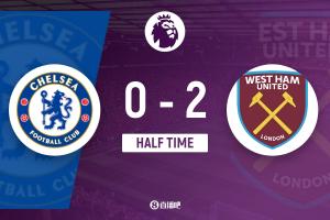 上半場(chǎng)傷停補(bǔ)時(shí)5分鐘,半場(chǎng)結(jié)束,切爾西暫0-2西漢姆聯(lián)。