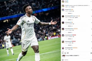 本場比賽維尼修斯破門,打破個人連續(xù)13場西甲進球荒,賽后他也在社媒曬出本場慶祝進球照片,配文寫道:“至死不渝,永遠支持皇家馬德里!”