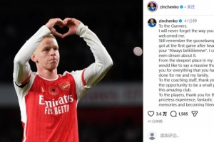 體育資訊2月2日訊 阿森納后衛(wèi)津琴科轉(zhuǎn)會(huì)加盟阿賈克斯,烏克蘭人在社交媒體上對(duì)老東家表示了感謝。