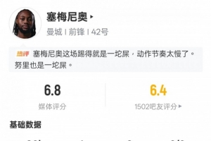 體育資訊2月2日訊 英超第24輪焦點(diǎn)戰(zhàn),曼城客場(chǎng)2-2熱刺。塞梅尼奧首發(fā)出戰(zhàn),打進(jìn)1粒進(jìn)球,6次過(guò)人0成功,18次丟失球權(quán)全場(chǎng)最多,評(píng)分6.8。