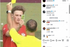 哈維·西蒙斯社媒曬出自己被出示黃牌的照片,以及球員向裁判出示UNO卡牌的梗圖,配文:“UNO說(shuō)——抽牌(雙關(guān)平局)?!?/p>
