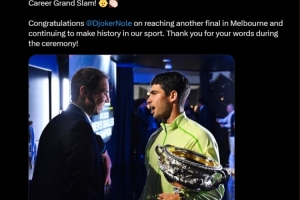 “同時也祝賀德約科維奇在墨爾本再次殺入決賽,并繼續(xù)在我們的運動中創(chuàng)造歷史。感謝你在頒獎儀式上說的那些話!”