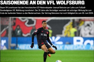 體育資訊2月3日訊 勒沃庫森宣布法國U21國腳貝洛西安租借至沃爾夫斯堡。