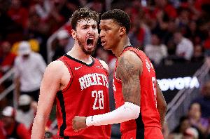賽后,火箭球員小賈巴里·史密斯在個(gè)人社交媒體曬出申京的海報(bào),配文:“全明星”。