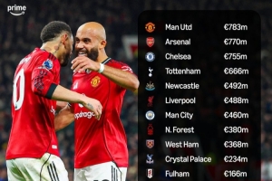 體育資訊2月3日訊 外媒Prime Video Sport根據(jù)德轉(zhuǎn)數(shù)據(jù)列出了英超俱樂部近5個賽季的凈支出,曼聯(lián)、阿森納、切爾西位列前三,利物浦和曼城排名六、七,布萊頓則是唯一有凈收入的球隊。
