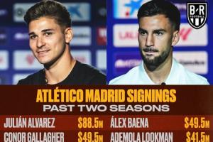 據(jù)BR統(tǒng)計,馬競過去兩個賽季引援花費總計達4.87億美元,引進了阿爾瓦雷斯、加拉格爾、勒諾爾芒、漢茨科等人。