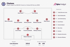 體育資訊2月4日訊 聯(lián)賽杯半決賽次回合比賽,切爾西前往客場挑戰(zhàn)阿森納。賽前首發(fā)陣容顯示,切爾西本場比賽采用了三后衛(wèi)陣型。
