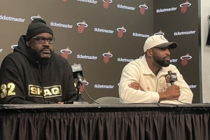 發(fā)布會期間奧尼爾吹牛說自己對現(xiàn)在這支熱火很熟悉,韋德則調(diào)侃讓他說出5個球員的名字,奧尼爾沉默了...